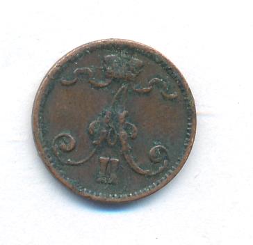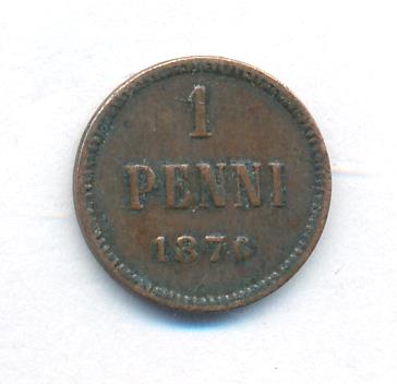 Лицевая сторона — вензель Александра II, оборотная — номинал (1 PENNIA) и дата. Нормативный вес — 1,28 грамма, гурт гладкий.