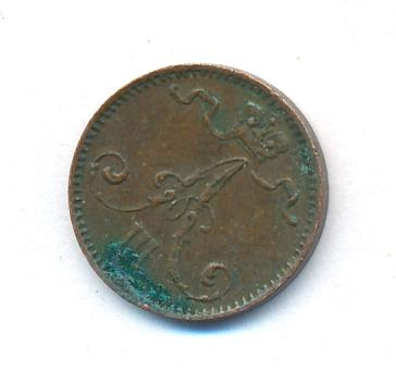 Лицевая сторона — вензель Александра II, оборотная — номинал (1 PENNIA) и дата. Нормативный вес — 1,28 грамма, гурт гладкий.