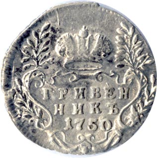 Гривенник 1742-1757 годов