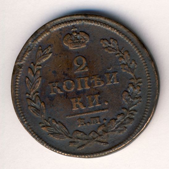 Манифестом от 29 августа 1810 года для медных монет всех номиналов стопа увеличивается в полтора раза и становится 24 рубля из пуда. В следующие два десятилетия по этой норме чеканятся только двухкопеечники, копейки и деньги, призванные ликвидировать нехватку разменной монеты. В оформлении монет вместо кольцевых ободков на оборотной стороне размещается венок из лавровой и дубовой ветвей, как на серебряной монете.