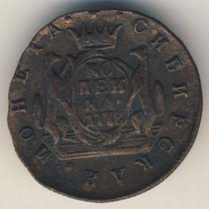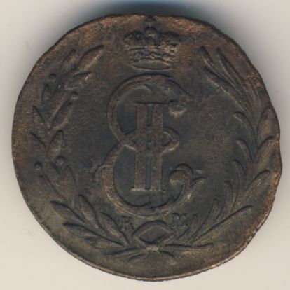 Лицевая сторона - два соболя поддерживают щит с обозначением номинала (копейка) под короной, надпись «СИБИРСКАЯ МОНЕТА». Оборотная — вензель Екатерины II в венке из пальмовой и лавровой ветвей. Гурт — шнур, вес — 6,55 грамма.