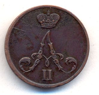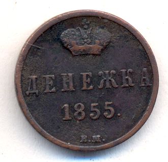 Лицевая сторона — вензель Николая I, оборотная — обозначение номинала (денежка) и дата. Нормативный вес — 2,56 грамма, гурт гладкий.