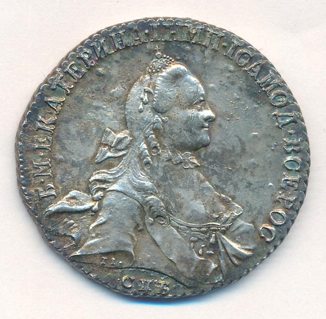 Лицевая сторона — портрет императрицы и надпись «Б М ЕКАТЕРИНА II IМП I САМОД ВСЕРОС», оборотная — двуглавый орел и надпись «МОНЕТА РУБЛЬ» и дата. Проба — 750, нормативный вес — 24 грамма, гурт — шнур.