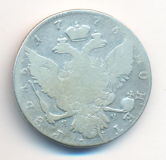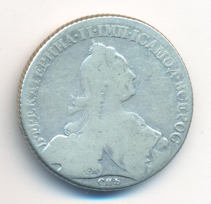 Лицевая сторона — портрет императрицы и надпись «Б М ЕКАТЕРИНА II IМП I САМОД ВСЕРОС», оборотная — двуглавый орел и надпись «МОНЕТА РУБЛЬ» и дата. Проба — 750, нормативный вес — 24 грамма, гурт — шнур.