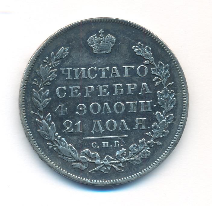 Лицевая сторона - «масонский орел», надпись «МОНЕТА РУБЛЬ» и дата, оборотная - окруженная венком из лавровой и дубовой ветвей надпись «ЧИСТАГО СЕРЕБРА 4 ЗОЛОТН 21 ДОЛЯ». Проба — 868, нормативный вес — 20,73 грамма.
