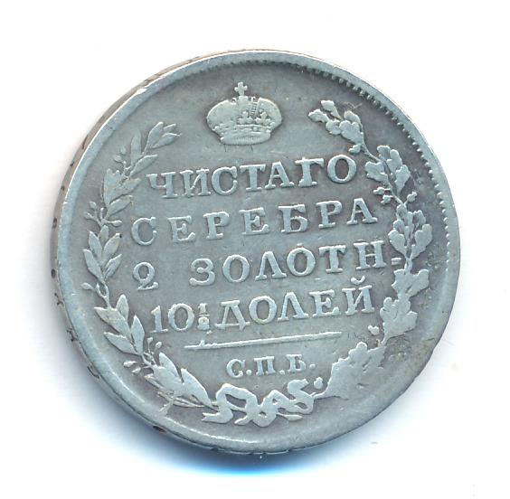 Лицевая сторона - двуглавый орел, дата и надпись «МОНЕТА РУБЛЬ», оборотная — окруженная венком из лавровой и дубовой ветвей надпись «ЧИСТАГО СЕРЕБРА 2 ЗОЛОТН 10 ДОЛЕЙ». Проба — 868, нормативный вес — 10,37 грамма.