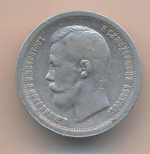 Лицевая сторона — портрет Николая II в круговой надписи «Б.М. НИКОЛАЙ II ИМПЕРАТОРЪ И САМОДЕРЖЕЦЪ ВСЕРОСС», оборотная — двуглавый орел, обозначение номинала (50 копеекъ) и дата.