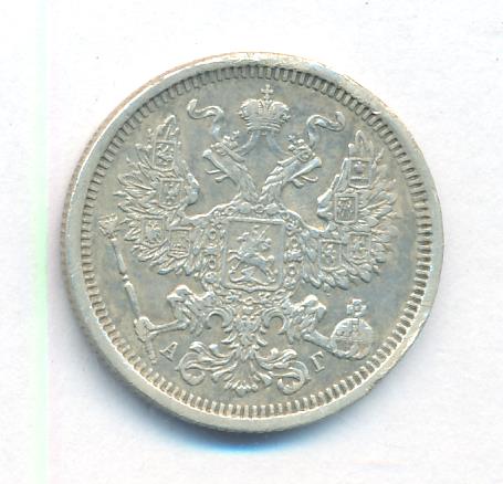 Лицевая сторона — гербовый орел, оборотная —обозначение номинала (20 копеекъ), окруженное венком из лавровой и дубовой ветвей и дата.