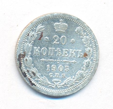 Лицевая сторона — гербовый орел, оборотная —обозначение номинала (20 копеекъ), окруженное венком из лавровой и дубовой ветвей и дата.