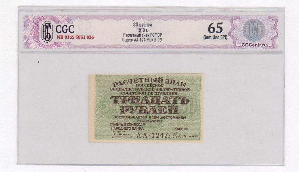 Расчетные знаки РСФСР образца 1919 г.