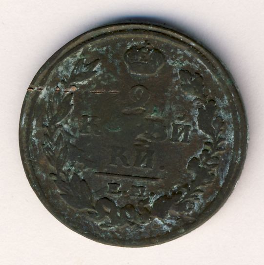 Манифестом от 29 августа 1810 года для медных монет всех номиналов стопа увеличивается в полтора раза и становится 24 рубля из пуда. В следующие два десятилетия по этой норме чеканятся только двухкопеечники, копейки и деньги, призванные ликвидировать нехватку разменной монеты. В оформлении монет вместо кольцевых ободков на оборотной стороне размещается венок из лавровой и дубовой ветвей, как на серебряной монете.
