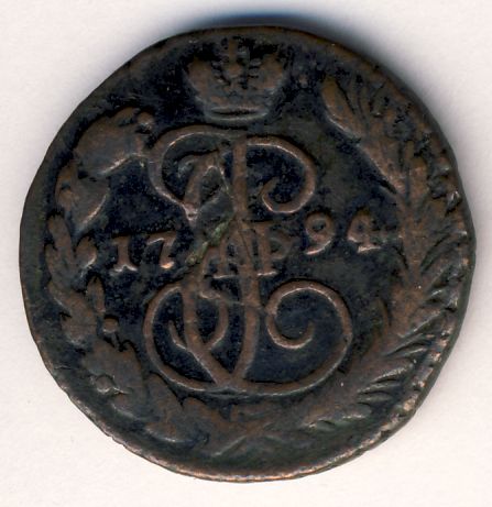 Лицевая сторона — Георгий Победоносец и обозначение номинала (копейка) в картуше, оборотная — вензель Екатерины II и дата. Нормативный вес — 10,24 грамма, гурт — сетка, или узор, или шнур.