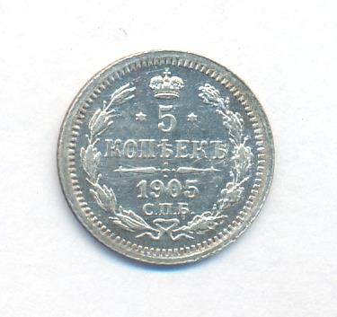 Лицевая сторона — гербовый орел, оборотная —обозначение номинала (5 копеекъ), окруженное венком из лавровой и дубовой ветвей и дата.