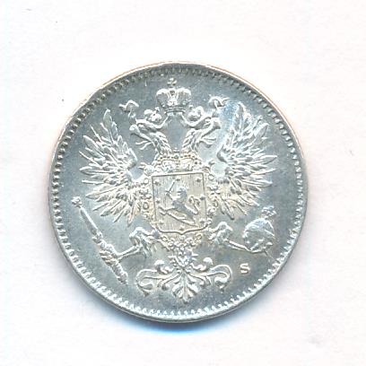 Лицевая сторона — российский двуглавый орел с гербом Великого княжества Финляндского на груди, оборотная — номинал и дата в венке из дубовых листьев. Проба — 750, нормативный вес — 2,55 грамма, гурт рубчатый.