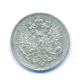 Лицевая сторона — российский двуглавый орел с гербом Великого княжества Финляндского на груди, оборотная — номинал и дата в венке из дубовых листьев. Проба — 750, нормативный вес — 1,27 грамма, гурт рубчатый.