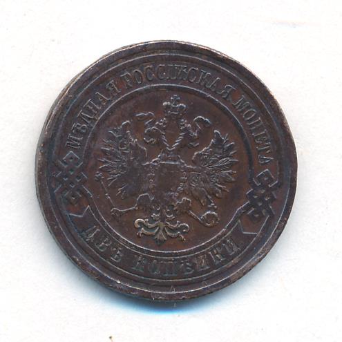 Лицевая сторона — двуглавый орел, надпись МЕДНАЯ РОССIЙСКАЯ МОНЕТА и обозначение номинала (две копейки); оборотная — обозначение номинала (2 копейки) в бусовом ободке и дата. Нормативный вес — 6,55 грамма, гурт рубчатый.
