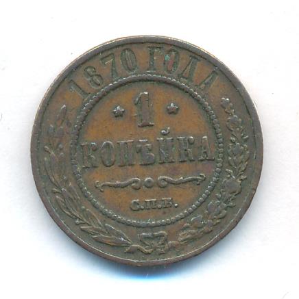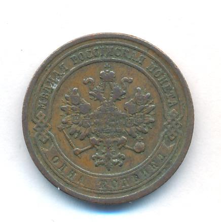 Лицевая сторона — двуглавый орел, надпись МЕДНАЯ РОССIЙСКАЯ МОНЕТА и обозначение номинала (одна копейка); оборотная — обозначение номинала (1 копейка) в бусовом ободке и дата. Нормативный вес — 3,28 грамма, гурт рубчатый.