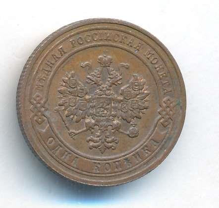 Лицевая сторона — двуглавый орел, надпись МЕДНАЯ РОССIЙСКАЯ МОНЕТА и обозначение номинала (одна копейка); оборотная — обозначение номинала (1 копейка) в бусовом ободке и дата. Нормативный вес — 3,28 грамма, гурт рубчатый.