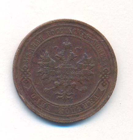 Лицевая сторона — двуглавый орел, надпись МЕДНАЯ РОССIЙСКАЯ МОНЕТА и обозначение номинала (одна копейка); оборотная — обозначение номинала (1 копейка) в бусовом ободке и дата. Нормативный вес — 3,28 грамма, гурт рубчатый.