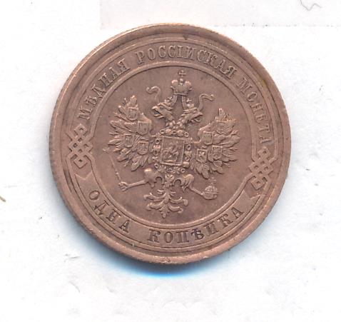 Лицевая сторона — двуглавый орел, надпись МЕДНАЯ РОССIЙСКАЯ МОНЕТА и обозначение номинала (одна копейка); оборотная — обозначение номинала (1 копейка) в бусовом ободке и дата. Нормативный вес — 3,28 грамма, гурт рубчатый.