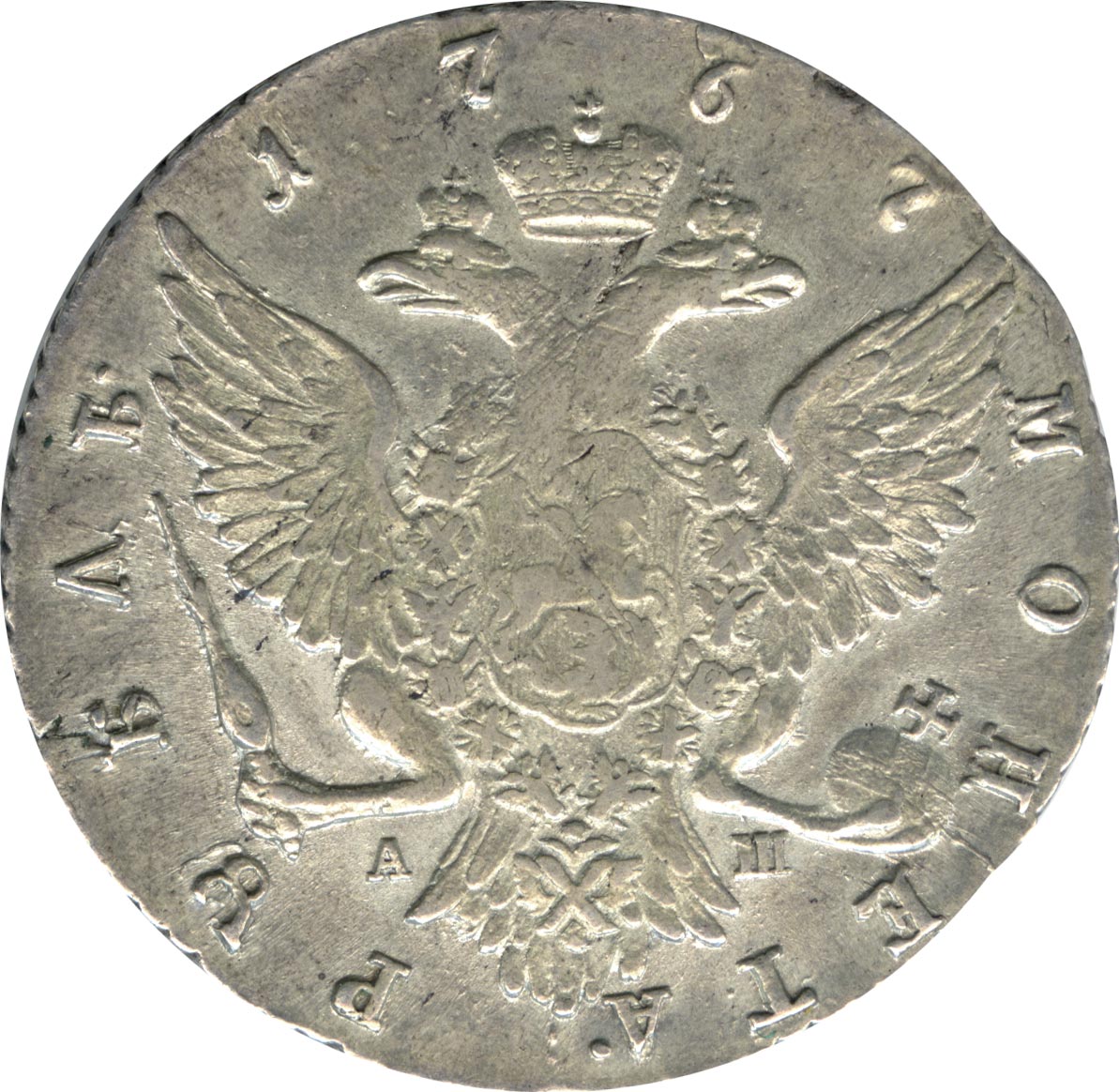 Большая часть рублей Петра III прямо перечеканиваются в новые, хотя официально такого указания не было. Портрет «с шарфом на шее» един для Московского и Петербургского дворов, но петербургский орел отличается от московского. Портреты на московских рублях 1762 года и большинстве рублей 1768 года схожи с петербургскими. С 1768 года появляется новый московский тип.