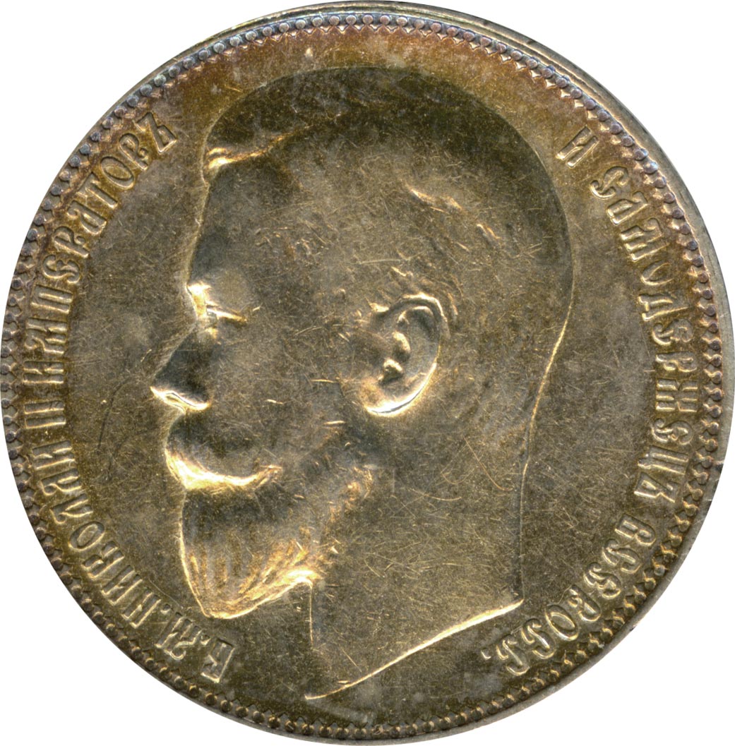 Николай II сохраняет принятый отцом тип, но на банковских монетах его портрет (работы Васютинского) повернут влево (на запад). На оборотной стороне сохраняется тот же герб, вплоть до знака АГ под задней ногой коня.