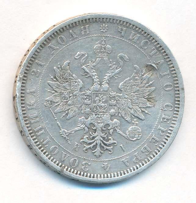 Лицевая сторона — гербовый орел и надпись «ЧИСТОГО СЕРЕБРА 4 ЗОЛОТНИКА 21 ДОЛЯ», оборотная — обозначение номинала «РУБЛЬ», окруженное венком из лавровой и дубовой ветвей и дата.