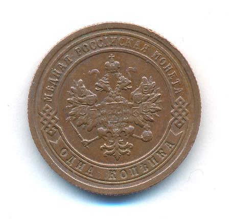 Лицевая сторона — двуглавый орел, надпись МЕДНАЯ РОССIЙСКАЯ МОНЕТА и обозначение номинала (одна копейка); оборотная — обозначение номинала (1 копейка) в бусовом ободке и дата. Нормативный вес — 3,28 грамма, гурт рубчатый.