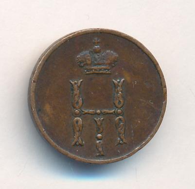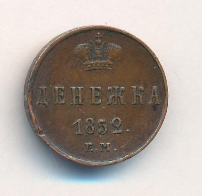 Лицевая сторона — вензель Николая I, оборотная — обозначение номинала (денежка) и дата. Нормативный вес — 2,56 грамма, гурт гладкий.