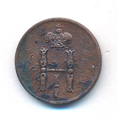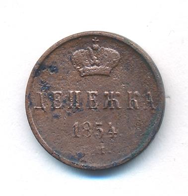 Лицевая сторона — вензель Николая I, оборотная — обозначение номинала (денежка) и дата. Нормативный вес — 2,56 грамма, гурт гладкий.