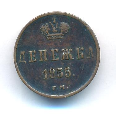 Лицевая сторона — вензель Николая I, оборотная — обозначение номинала (денежка) и дата. Нормативный вес — 2,56 грамма, гурт гладкий.