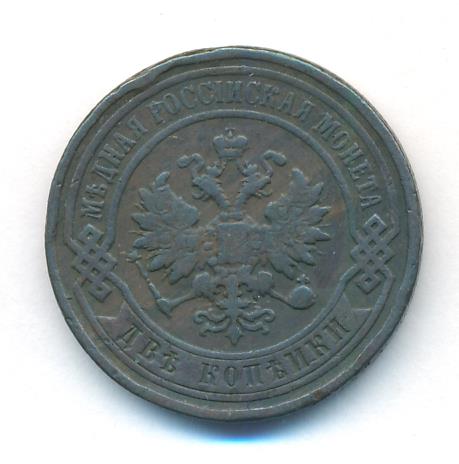 Лицевая сторона — двуглавый орел, надпись МЕДНАЯ РОССIЙСКАЯ МОНЕТА и обозначение номинала (две копейки); оборотная — обозначение номинала (2 копейки) в бусовом ободке и дата. Нормативный вес — 6,55 грамма, гурт рубчатый.