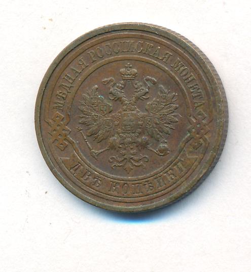 Лицевая сторона — двуглавый орел, надпись МЕДНАЯ РОССIЙСКАЯ МОНЕТА и обозначение номинала (две копейки); оборотная — обозначение номинала (2 копейки) в бусовом ободке и дата. Нормативный вес — 6,55 грамма, гурт рубчатый.