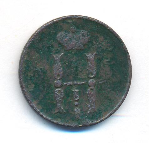 Лицевая сторона — вензель Николая I, оборотная — обозначение номинала (копейка) и дата. Нормативный вес — 5,12 грамма, гурт гладкий.