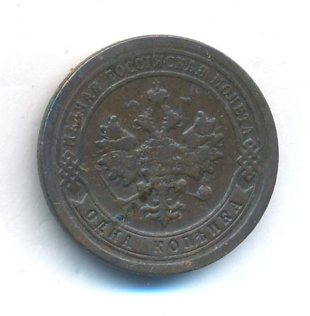 Лицевая сторона — двуглавый орел, надпись МЕДНАЯ РОССIЙСКАЯ МОНЕТА и обозначение номинала (одна копейка); оборотная — обозначение номинала (1 копейка) в бусовом ободке и дата. Нормативный вес — 3,28 грамма, гурт рубчатый.