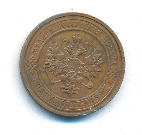 Лицевая сторона — двуглавый орел, надпись МЕДНАЯ РОССIЙСКАЯ МОНЕТА и обозначение номинала (одна копейка); оборотная — обозначение номинала (1 копейка) в бусовом ободке и дата. Нормативный вес — 3,28 грамма, гурт рубчатый.