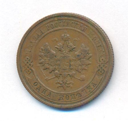 Лицевая сторона — двуглавый орел, надпись МЕДНАЯ РОССIЙСКАЯ МОНЕТА и обозначение номинала (одна копейка); оборотная — обозначение номинала (1 копейка) в бусовом ободке и дата. Нормативный вес — 3,28 грамма, гурт рубчатый.
