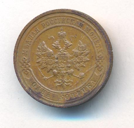 Лицевая сторона — двуглавый орел, надпись МЕДНАЯ РОССIЙСКАЯ МОНЕТА и обозначение номинала (одна копейка); оборотная — обозначение номинала (1 копейка) в бусовом ободке и дата. Нормативный вес — 3,28 грамма, гурт рубчатый.