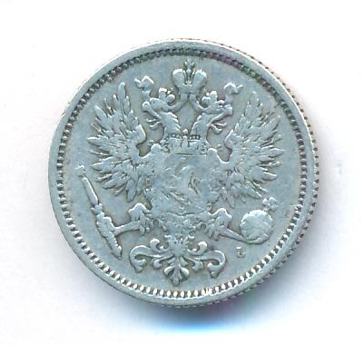 Лицевая сторона — российский двуглавый орел с гербом Великого княжества Финляндского на груди, оборотная — номинал и дата в венке из дубовых листьев. Проба — 750, нормативный вес — 2,55 грамма, гурт рубчатый.
