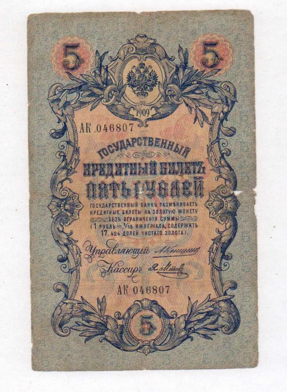 Коншин 1910 г. Гос.кредитные билеты 1905-1912 гг.
