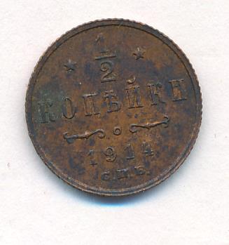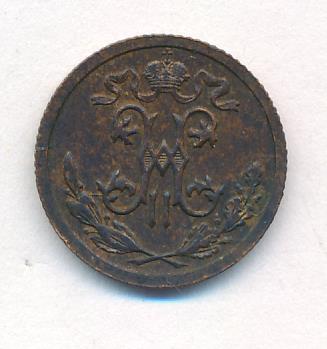 Лицевая сторона — вензель Александра II в венке из лавровой и дубовой ветвей; оборотная — обозначение номинала (1/2 копейки) и дата. Нормативный вес — 1,64 грамма, гурт рубчатый.