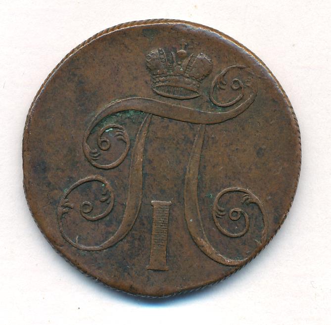 Лицевая сторона — вензель Павла I под короной, оборотная — номинал (2 копейки) и дата. Нормативный вес — 20,48 грамма, гурт — шнур.