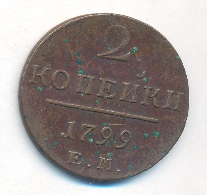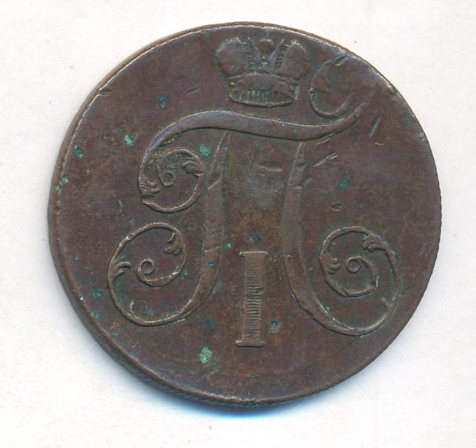 Лицевая сторона — вензель Павла I под короной, оборотная — номинал (2 копейки) и дата. Нормативный вес — 20,48 грамма, гурт — шнур.