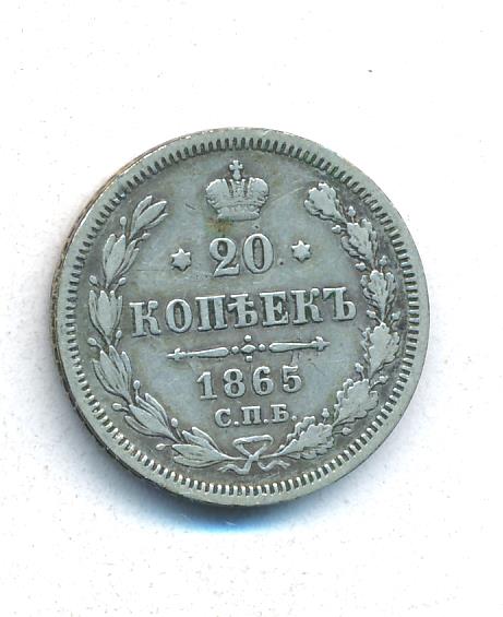 Лицевая сторона — гербовый орел, оборотная —обозначение номинала (20 копеекъ), окруженное венком из лавровой и дубовой ветвей и дата.