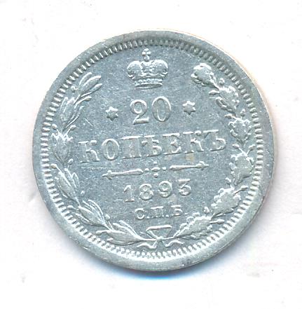 Лицевая сторона — гербовый орел, оборотная —обозначение номинала (20 копеекъ), окруженное венком из лавровой и дубовой ветвей и дата.