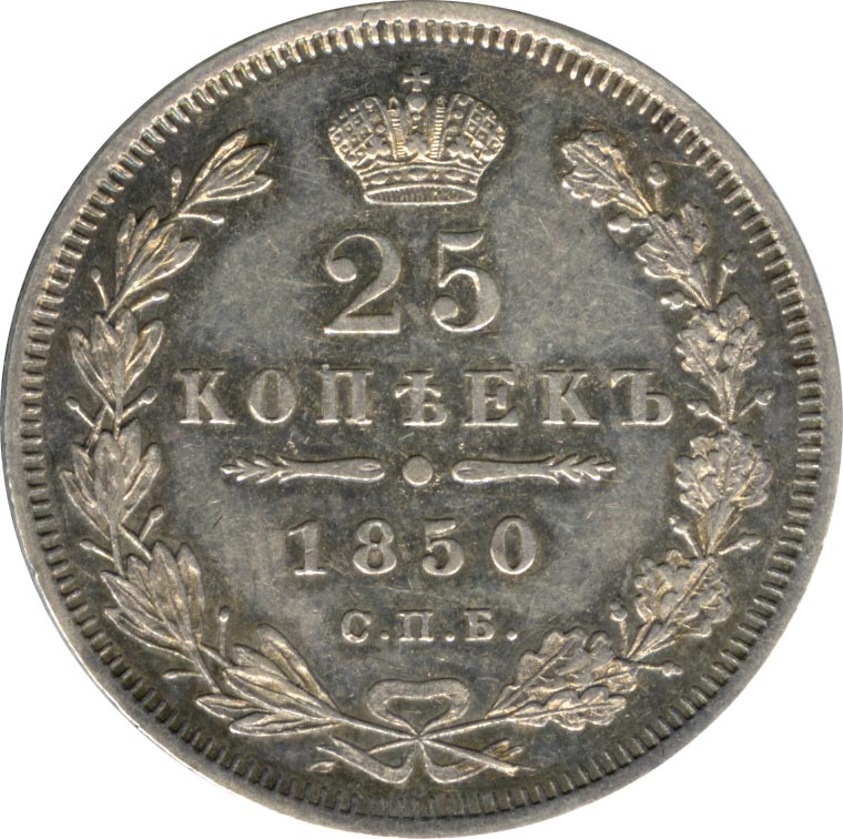 Лицевая сторона — новый гербовый орел с поднятыми крыльями и надпись «ЧИСТОГО СЕРЕБРА 1 ЗОЛОТНИКЪ 5 ДОЛЕЙ», оборотная —обозначение номинала (25 копеекъ), окруженное венком из лавровой и дубовой ветвей и дата.