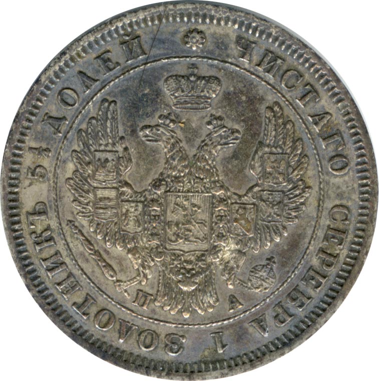В январе 1830 года Николай I дает министру финансов Е. Ф. Канкрину устное указание «о сделании на золотых и серебряных монетах орла как на платиновых». На новом гербе крылья орла подняты, на них размещены шесть местных гербов — казанский, астраханский, сибирский, польский, херсонесский и финляндский. На груди орла — московский герб, на головах — короны. С 1832 года заодно с орлом изменяются и композиции обеих сторон монет: на лицевой стороне содержание чистого серебра в монете теперь обозначает круговая надпись. Нужно помнить, что доставшаяся Николаю в наследство от трех прежних правлений масса обесцененных бумажных денег является острой экономической проблемой. Правительство Николая удерживает объем ассигнаций строго на одном уровне, не прибегая к дополнительным эмиссиям; курс рубля ассигнациями колеблется вокруг 35 копеек.