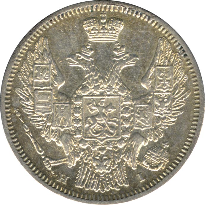 В январе 1830 года Николай I дает министру финансов Е. Ф. Канкрину устное указание «о сделании на золотых и серебряных монетах орла как на платиновых». На новом гербе крылья орла подняты, на них размещены шесть местных гербов — казанский, астраханский, сибирский, польский, херсонесский и финляндский. На груди орла — московский герб, на головах — короны. Выделяют шесть типов орла.