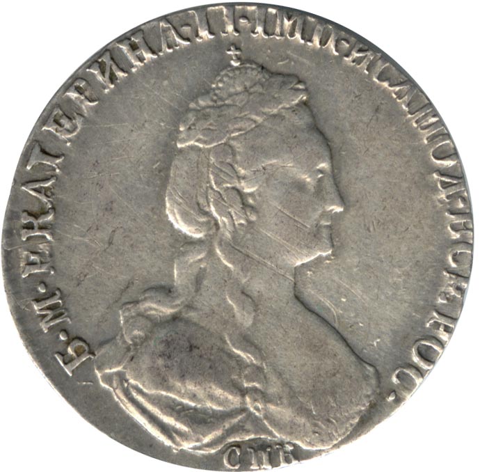 Через 15 лет после дворцового переворота, в результате которого на российский престол взошла Екатерина II, она ощущает, что сравнялась величием с первым российским императором. 22 октября 1776 года генерал-прокурор Вяземский передает два ее портрета с указанием «для рублевой и прочей монеты одежду сделать Императорскую, а на главе, сверх ныне означенного лаврового венка, корону».