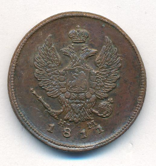 Манифестом от 29 августа 1810 года для медных монет всех номиналов стопа увеличивается в полтора раза и становится 24 рубля из пуда. В следующие два десятилетия по этой норме чеканятся только двухкопеечники, копейки и деньги, призванные ликвидировать нехватку разменной монеты. В оформлении монет вместо кольцевых ободков на оборотной стороне размещается венок из лавровой и дубовой ветвей, как на серебряной монете.